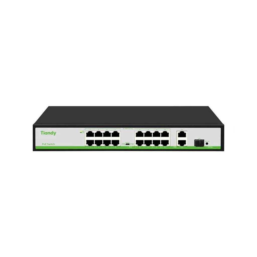 Comes with 16×10/100 Mbps PoE ports, 2×Gigabit uplink ports, and 1×Gigabit SFP port, allowing a mix of wired and fiber connectivity for security and networking applications.